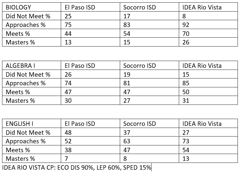 El Paso TX United States School Year. Idea Rio Vista Academy. IDEA serves nearly 75000 college-bound students in 137 schools across Texas Southern Louisiana and Florida and is on-track to maintain its legacy of sending 100 of its graduates to.